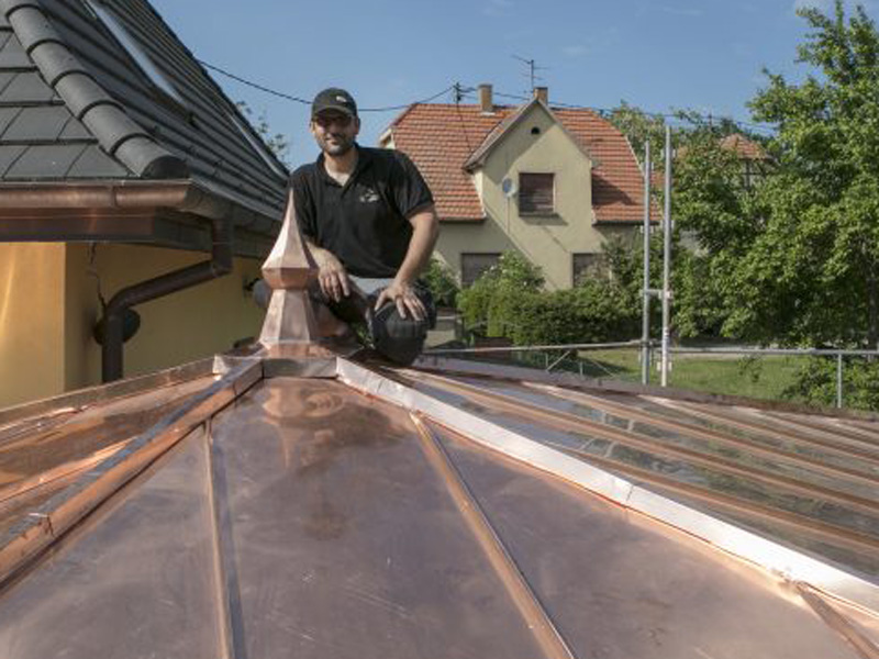 Couverture, bardage, velux et étanchéité d'une extension Réfection toiture en joint debout PREFA Couverture d’un kiosque en cuivre Extension en Zinc à Cronenbourg Terrasse végétalisée au quartier de la Meinau Chantier de surélévation de toiture Lucarne cintrée au centre de Strasbourg Tuyau de descente en cuivre