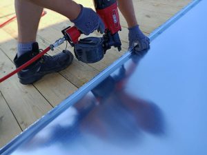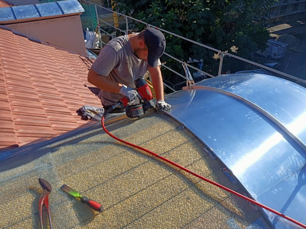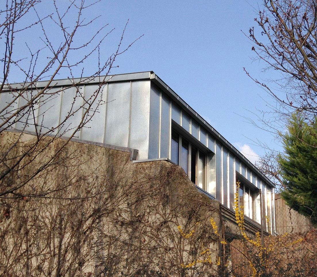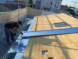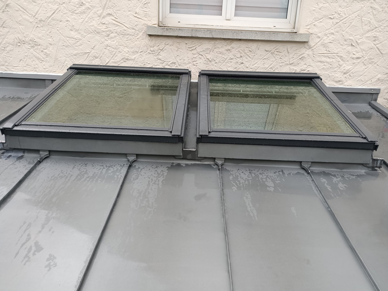 Nous avons créé un bardage et une couverture en joint debout en aluminium PREFA, assurant une esthétique élégante et une durabilité à long terme. De plus, nous avons réalisé une superbe terrasse en EPDM avec des dalles sur plots en grès cérame, offrant un espace extérieur à la fois élégant et robuste.