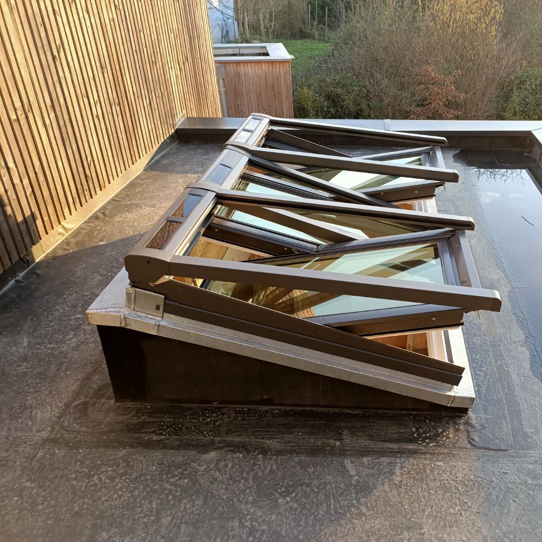Pose d’une membrane EPDM sur un toit plat et installation d’une verrière atelier 3 en 1